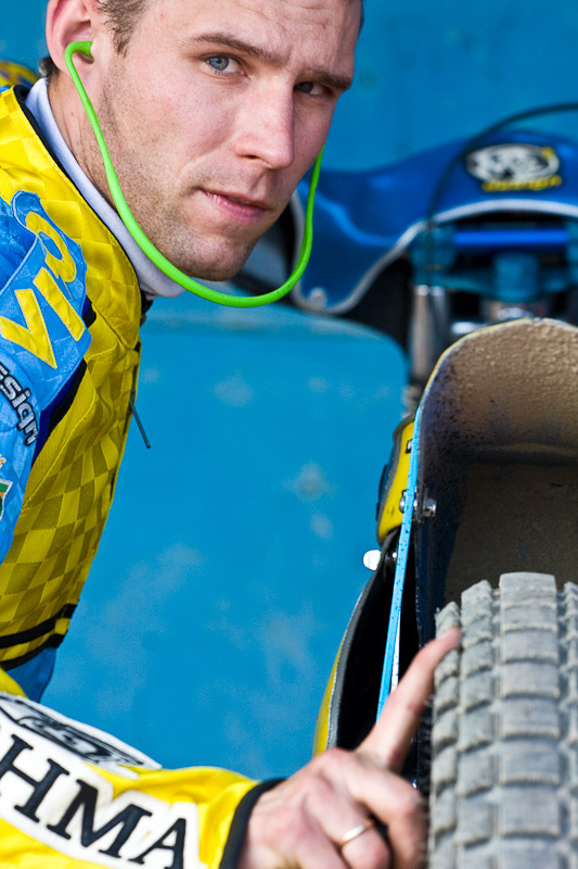 Po roce jsem se vydal na plochou dráhu do Mšena. Jel se tu extraligový duel mezi domácím Grepl PKD Mšeno a AK Slaný. Začátek byl v 19:30, tedy v době západu slunce. S tím souvisel rychlý úbytek světla. Před startem závodu jsem lovil nějaké záběry v boxech a pak uvnitř i vně oválu. Focení ze vnitř komplikuje zábradlí za barierou, které je postavené v nešikovné výšce a často prochází jezdcům hlavou. Na příště se na to připravím už z domova. Oproti loňskému roku jsem měl pocit, že jsem svojí tvořivou Můzu nechal doma a do Mšena odjel nepolíben. Alepoň jsem si odvezl nové postřehy a nápady na další závody.
