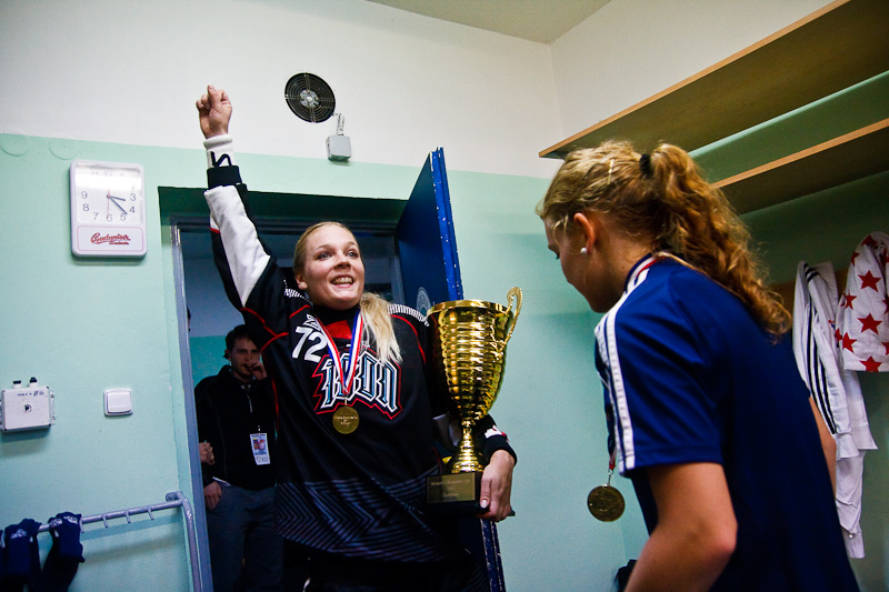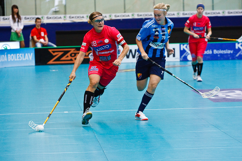 V uplynulém týdnu jsem fotil na nejprestižnější florbalové akci na klubové úrovni – Pohár mistrů 2011 (Champions Cup), který je obdobou fotbalové Ligy mistrů. Turnaj se konal na zimním stadionu v Mladé Boleslavi. Prostředí dobře znám, na florbalový turnaj se zakryl led a na něm se postavila hrací plocha. Na ploše bylo nalepených celkem hodně reklam, to samé mantinely a za nimi ještě elektronické reklamní tabule. Teprve za nimy se mohlo fotit, takže bohužel kontaktní fotky jsem si nezkusil. Kolem hřiště se motalo hodně lidí, kteří na snímcích rušili. Hrací plocha je o něco menší než u hokeje, hra se přenáší rychle. Počet hráčů 5+1, takže je opticky více plno. Rozehra mi přišla daleko víc rozvážná než u hokeje. Než se rozjel útok, tak to trvalo. Mile mě překvapila kontaktnost florbalu. Samozřejmě se to nedá intenzitou ani tvrdostí srovnávat s hokejem, ale občas se hráči vyšťuchují ze hřiště. Světla tu bylo o něco méně než na extralize.
